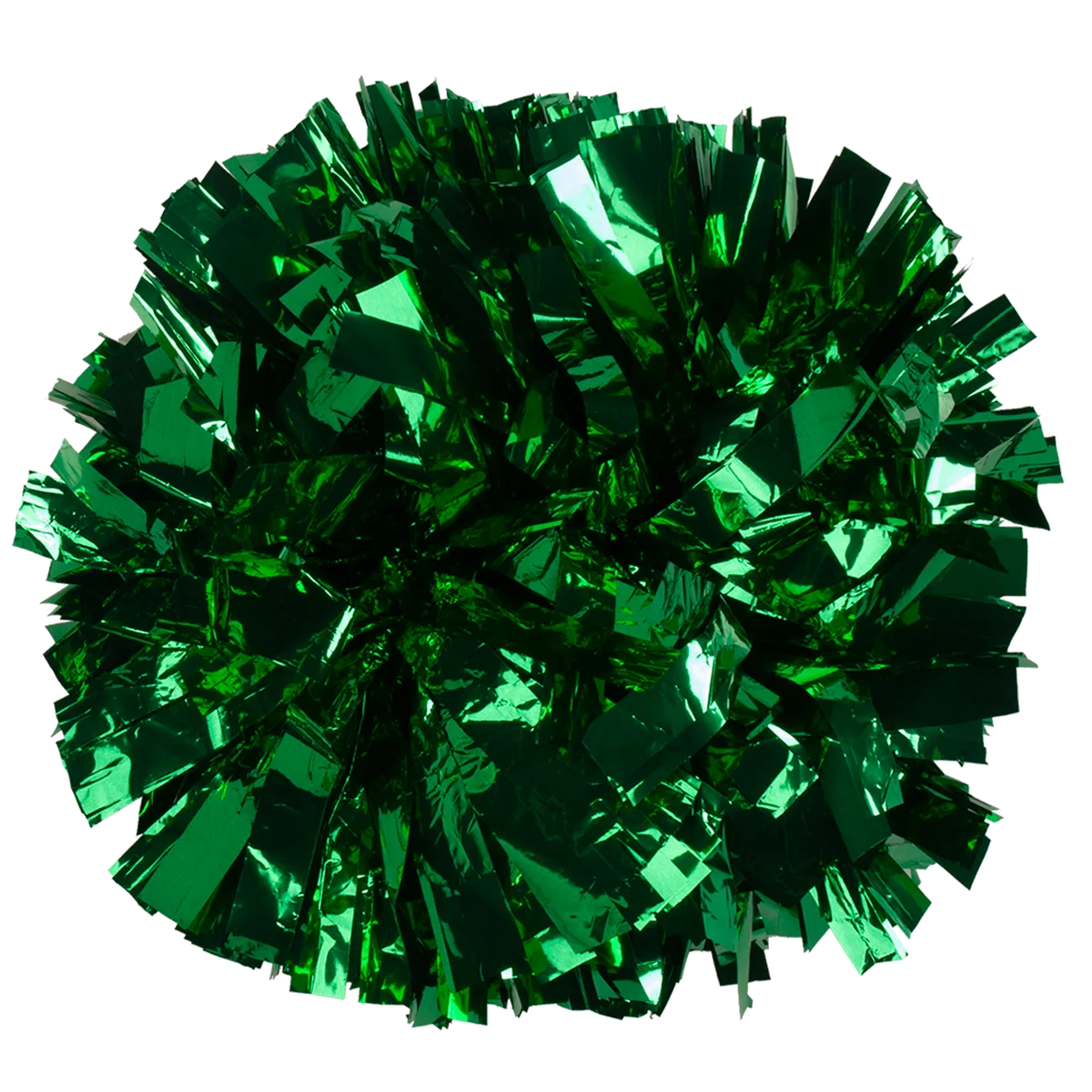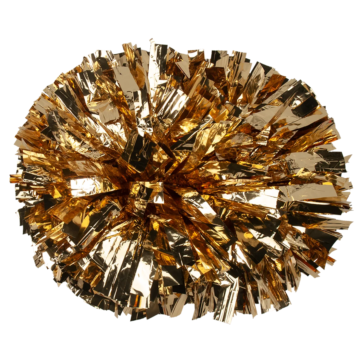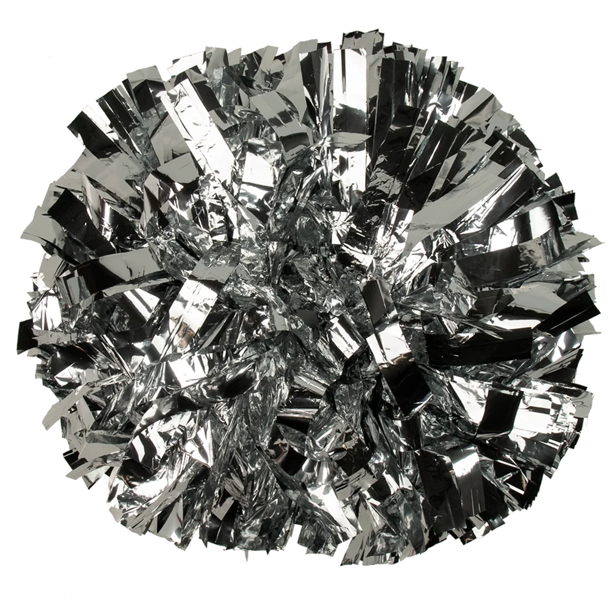 Baton handle pom with 3/4" wide streamers. Pick your size 4" up to 6" for the same cost. Solid1 color metallic, 2 color metallic or 3 color metallic mixed.
